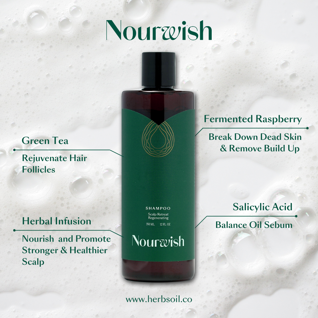 Excess sebum can clog hair follicles and impede new hair growth, eventually leading to hair loss. Our regenerating shampoo is packed with clinically proven ingredients and follicle-nourishing herbs, delivering an instant volume boost to fine hair. Remove grease and hair product buildup with just one wash, letting your scalp 'breathe' again in no time.